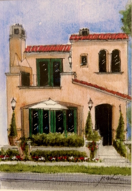 I love the architecture of the building and had already created a little watercolor of his home.